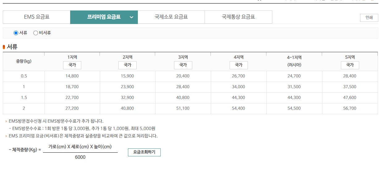 EMS·국제우편-국가별 요금안내-배달소요일/요금조회