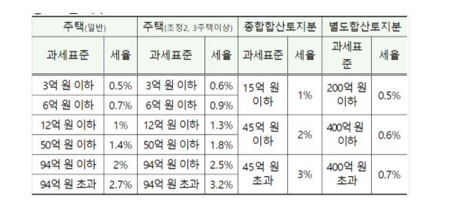 종합부동산세 과세대상과 과세기준 - 종합부동산세율