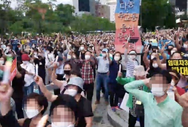 서울 한중심가에서 촛불집회가 일어낫습니다.
